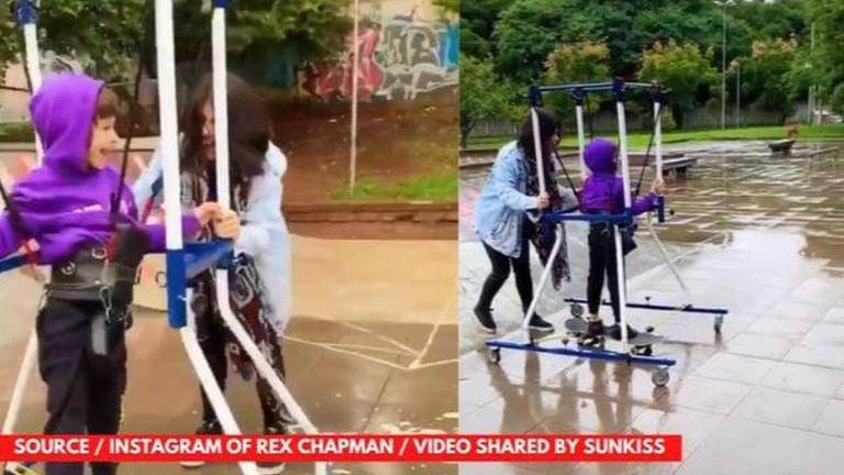 Basketball player Rex Chapman recently took to his social media to share an adorable video. In the video, a mother is seen helping her son, who suffers from cerebral palsy, skateboard in a skateboarding ring. The mom created a machine for the son to be able to skateboard. Take a look at the heartfelt video below.