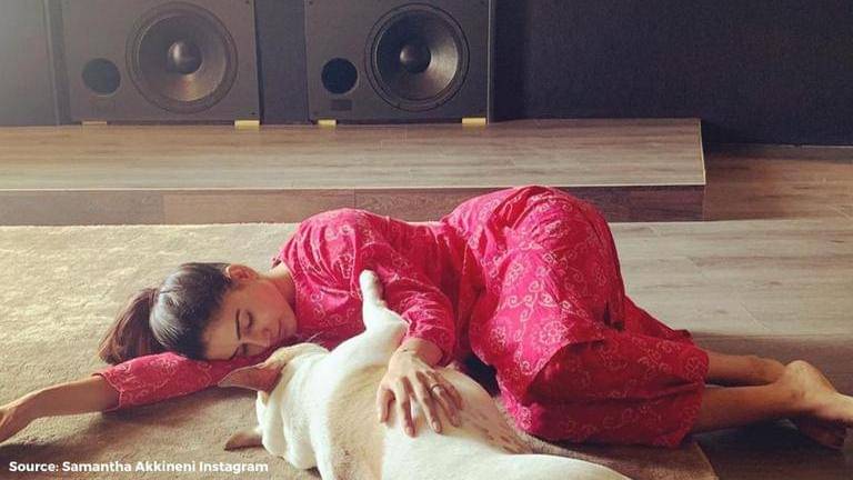 Samantha Akkineni has often shared pics of her dogs on Instagram. Take a look at an adorable Instagram picture of Samantha Akkineni with her pet dog.
