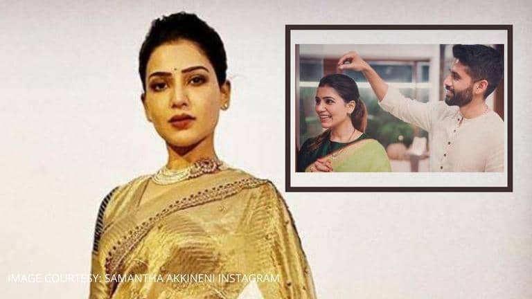 Actor Samantha Akkineni recently took to Instagram to share an adorable picture with husband Naga Chaitanya from actor Rana Daggubati’s wedding ceremony. In the pictures posted, Naga Chaitanya can be seen playing around with his wife’s well-set hair while she is enjoying a conversation. Samantha had also posted a family photograph previously, highlighting the intricate work done by the handloom industry.