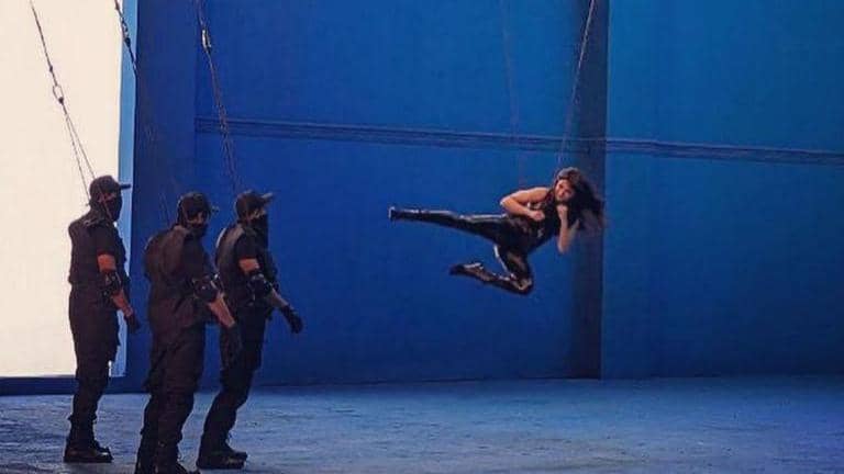 Samantha's Instagram post featured pictures of herself performing stunts on shoot. Though the pictures have been taken from far away, it is very easy for fans and followers to make out that it is indeed Samantha performing her own high-octane stunts. The Shaakuntalam actress could be suspended mid-air, with safety cables and harnesses supporting her. The actress wore an all-black skin tight ensemble with matching combat boots and an open mane. Her legs kicked out while she upheld a defensive stance with her hands.