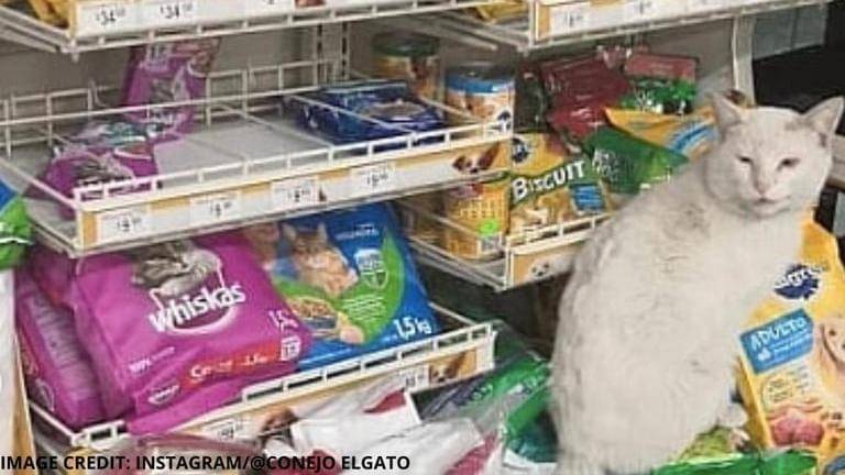 A video of a cute stray cat waiting on the streets and then tagging along with a favourite human into the store and shopping the food of its choice has amused the internet. Shared on Instagram by a user @conejoelgato, a page dedicated to the cat, the clip shows the white cat smartly accompanying a woman into a store, walking into the pet food section, and pointing out at the snack it would like him to buy.