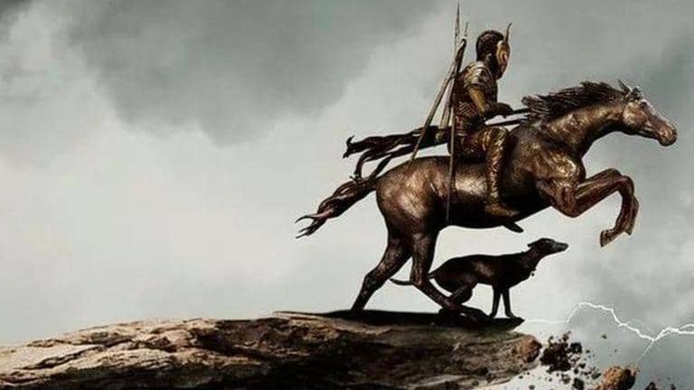 Sivakumar retweeted a post from Studio Green, which featured a poster. The poster featured Suriya's character on horseback while being dressed as a warrior. The horse is seen taking a leap from one mountain peak to another as they are seemingly crumbling. A dog is seen taking the leap alongside the horse. Lightning can also be seen lashing out into the sky, while dark clouds are visible in the background. The tweet from the studio read, "Warrior enters across the showers of glory and trumpets of Thunderstorms! Get ready to welcome #Suriya42 Title Announcement on April 16, at 9.05 a.m. A Mighty Valiant Saga In 10 Languages."