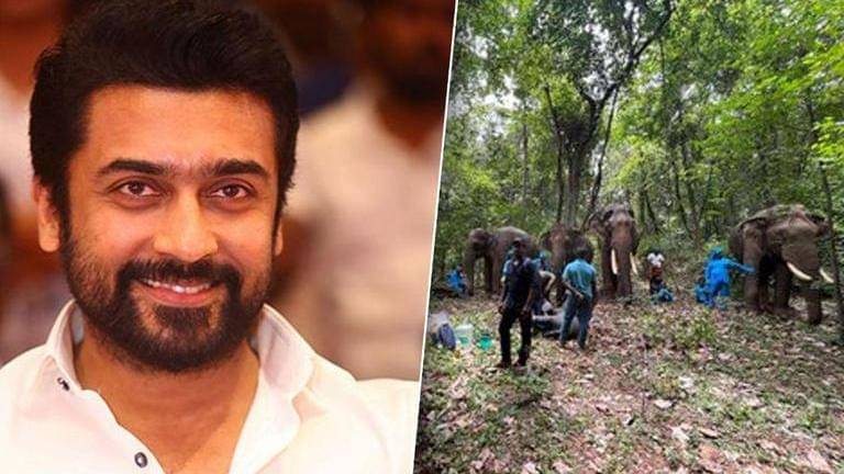 A few photos from the shoot of Suriya's Kanguva have gone viral on social media platforms. The film is being shot in the forests of Kodaikanal, a city in Tamil Nadu. In the photos, the crew is seen setting up the life-sized structures of elephants amid the woods in broad daylight.
