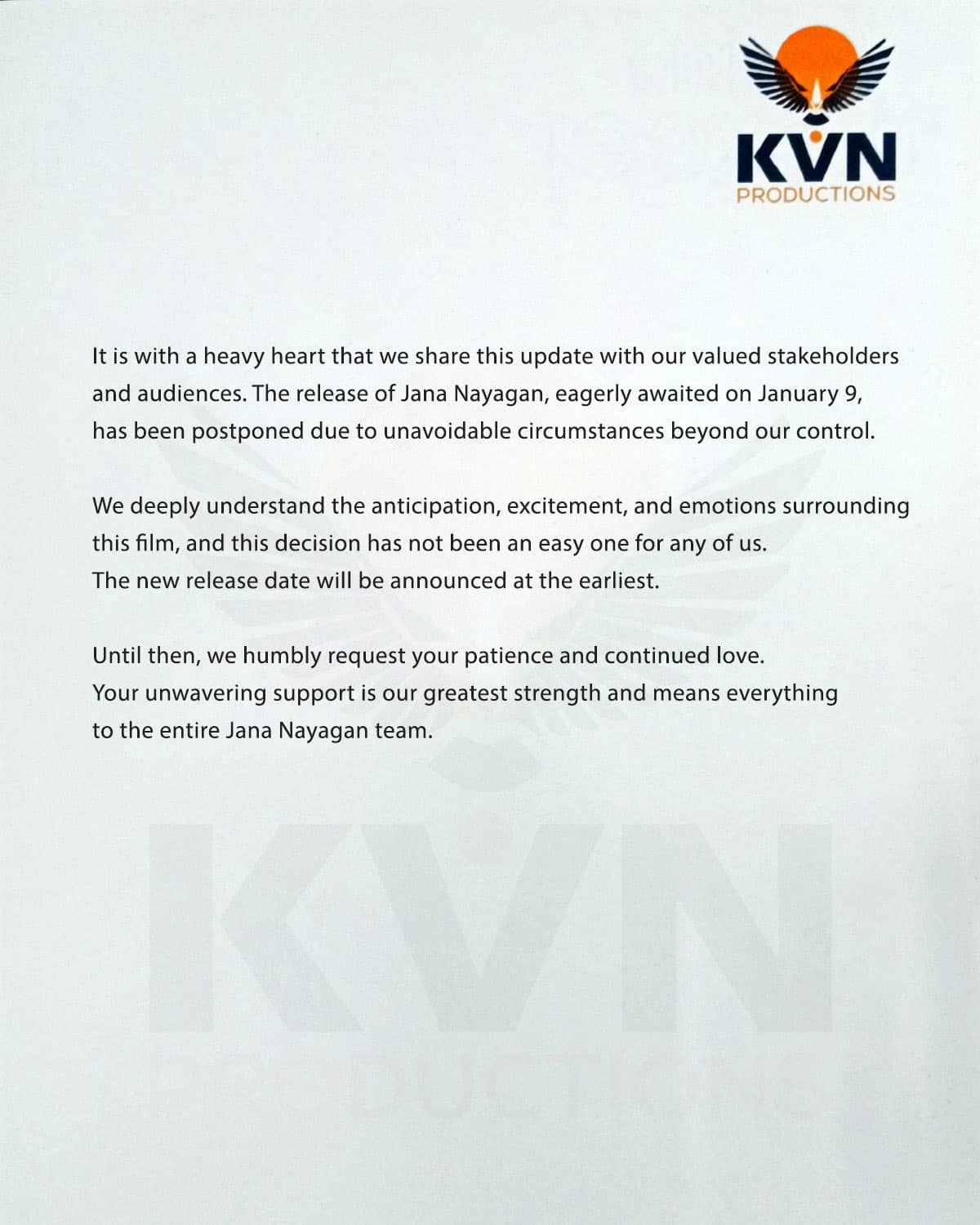 January 9, 2026: Producers officially announce postponement of the film