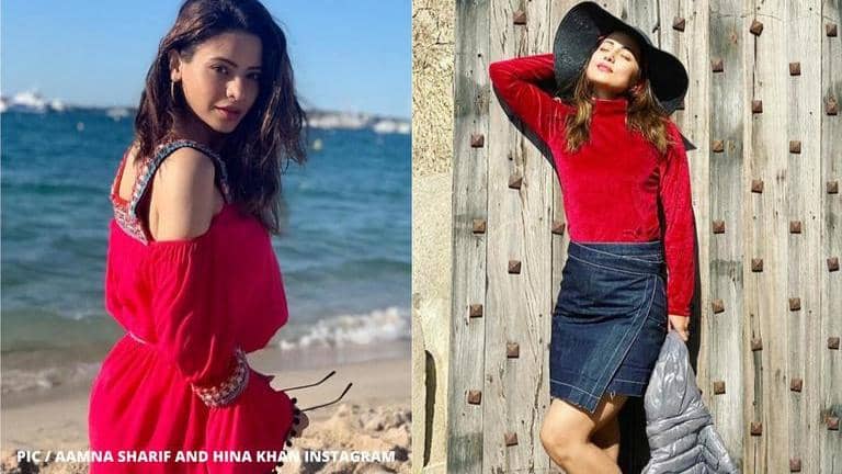 Both Aamna Sharif and Hina Khan are known for their impeccable sense of style. Both the stars can slay in any red coloured outfit and these pictures are proof.