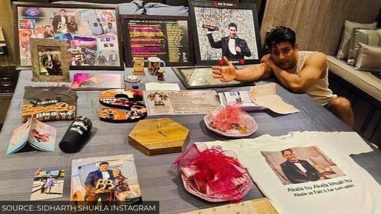 In the picture that Bigg Boss 13 winner Sidharth Shukla shared on his Instagram, he is posing alongside dozens of memento and souvenirs. Sidharth Shukla spread the gifts on his bed and sat by them while an unnamed person clicked the picture. Some of the gifts were photo collages and frames of the Bigg Boss 13 winner’s best moments. Sidhearts even made him a customized T-shirt which read, “Akela Hun Akela Khush Hun, Akele se Fatt thi hai tum sabki”, which translates to, “I am alone and I am happy being alone, you are scared of me”. This was Siddharth Shukla’s popular dialogue in the reality show when it was aired. Sidhearts even gifted him mugs, shawls, clocks and more goodies.