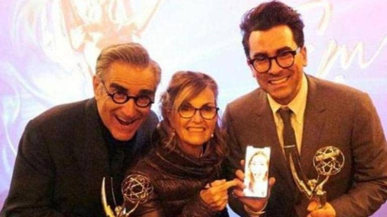 Eugene Levy, who is also the co-creator of the show, Catherine O'Hara, Dan Levy and Annie Murphy amid others graced the occasion of their win with smiles and giggles. Catherine O’Hara, who essayed the role of Moira in the pop show was asked about her ‘choice of wig’ for the night. She said that she preferred to be serious for the event and went with her original hair. The question invited a few giggles from her fellow cast members.
