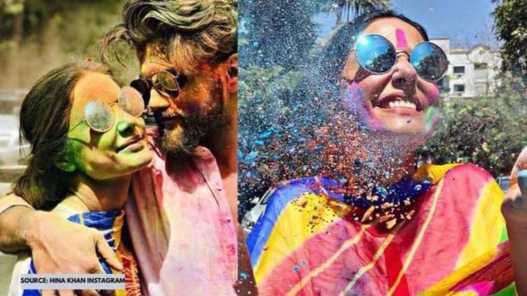 Hina Khan is also one of the actors who perfectly knows how to create buzz on social media. She has done it once again. Taking to Instagram, she shared a series of colourful pictures after celebrating Holi. The diva and her beau Rocky Jaiswal are giving major couple goals to fans in the picture.
