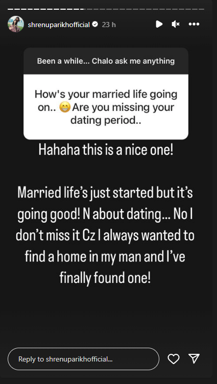 Shrenu Parikh held an Ask Me Anything session with her fans on Instagram on Sunday, and a user asked the actress about her married life.