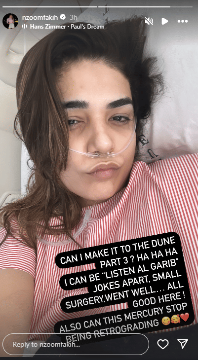 Anjum Fakih took to her Instagram stories, to share a crucial health update for all those worried about her whereabouts. The actress shared a selfie of herself dressed in a hospital gown, with an oxygen tube around her nose. Along side, was a detailed caption, which informed her fans of her fairly stable health. Interestingly, even after having undergone a surgery, Anjum's health update was peppered with a few light jokes - one in relation to recent Hollywood biggie Dune and the other in relation to a currently ongoing astrological event, the Mercury retrograde.