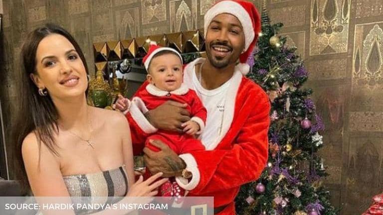 Hardik Pandya recently shared an adorable picture with Natasa Stankovic and their son Agastya Pandya as the family of three posed on a bed. Take a look.