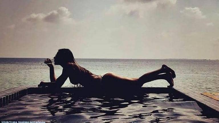 Nia Sharma posts pic of her enjoying a drink at the poolside, calls it 'quarantine mood'