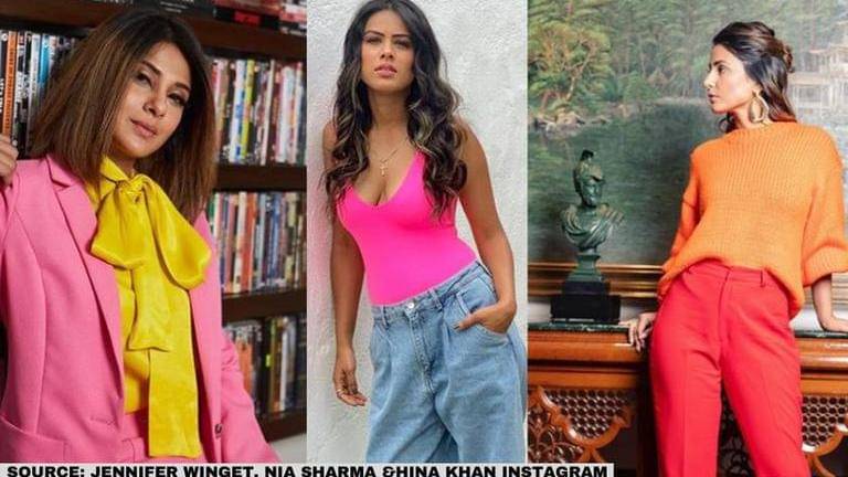 TV celebs like Hina Khan, Nia Sharma and Jennifer Winget have always set major fashion trends. These celebs have also had a vast presence not only on TV shows but on social media as well. Listed below are pictures of Hina Khan, Nia Sharma, and Jennifer Winget donning some stellar colour-blocking outfits.