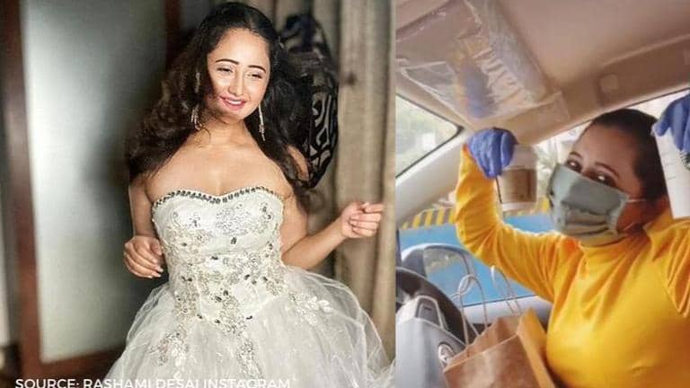 Rashami Desai shared a video in which she is seen sitting at the driver's seat of her car. In the video, Rashami is seen excited as she unpacks her coffee from the takeaway bag. In the video, Rashami has seen in a full sleeves yellow top and checkers pants. She was also seen wearing a mask and gloves to keep herself safe. Take a look at the video here.