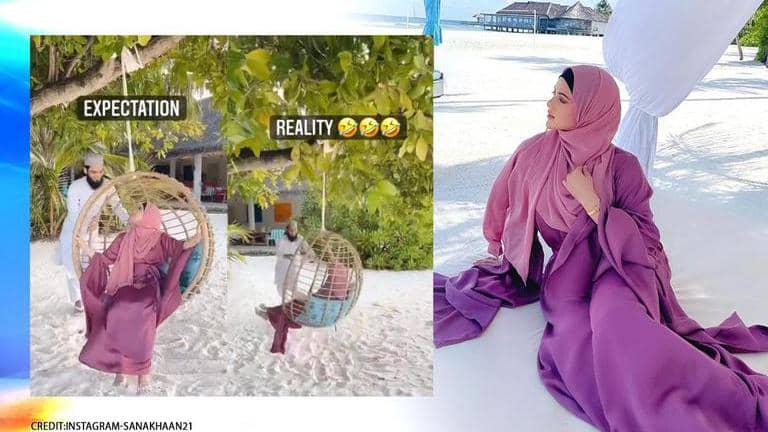 Sana Khan shares epic 'expectation vs reality' post, screams when husband pushes her swing