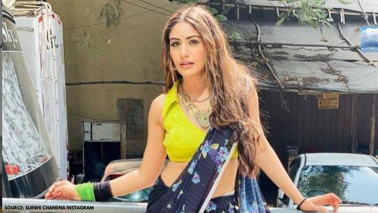 Surbhi Chandna shared a series of photos from the sets of her show 'Naagin 5'. She went on to flaunt her blue-green saree and penned a note. See post