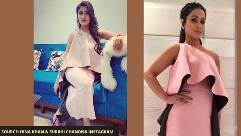 Hina Khan or Surbhi Chandna, who wore the pastel pink coloured outfit?