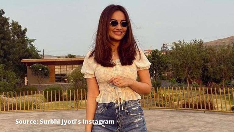Indian television actor Surbhi Jyoti was recently seen enjoying the sunset at Sula Vineyards. The actor was standing amidst the serene landscape wearing a white top and denim shorts. Friends and fans have been drooling over the actor's photos.