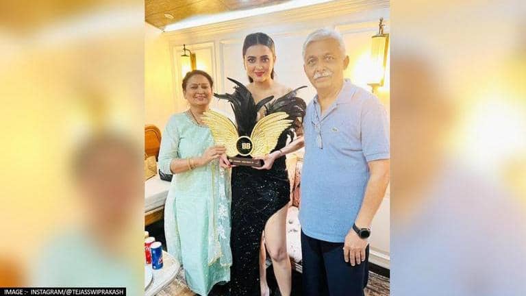 The much-awaited finale of the controversial reality show, Bigg Boss 15, took place on Sunday, January 30, 2022. Tejasswi Prakash, Pratik Sehajpal and Karan Kundrra made their way to the finale. While Karan Kundrra finished in third place, Tejasswi Prakash beat Pratik Sehajpal and took home the winning trophy of the show. Soon after her win, Tejasswi shared an adorable picture with her parents and penned down what the winning trophy meant to her.