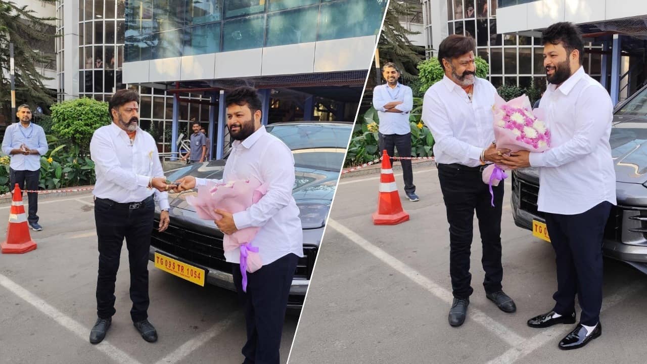 An X user named Vamsi Kakka shared some pictures in which the duo are seen posing with car. The caption read, “#NandamuriBalakrishna Garu surprises the sensational @MusicThaman with a grand Porsche as a token of appreciation!”.