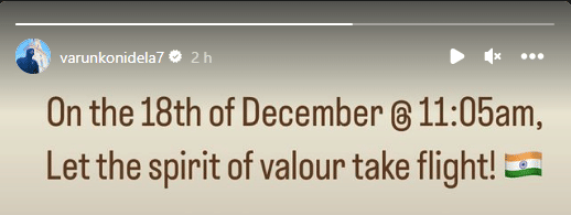 Varun Tej also shared the post on his Instagram Stories and wrote, "Let the spirit of valour take flight!"