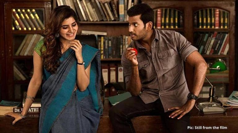 Vishal plays the role of Major R.Kathiravan, who is working on his anger management issues under Dr Rathi Devi (Samantha). To fulfil his sister’s wish, he tries to take a loan from a bank but he gets rejected every time and everywhere due to lack of financial security. He somehow manages to get a loan by forging papers. However, this results in a chain of unexpected events which impacts Kathir and his sister's lives.
