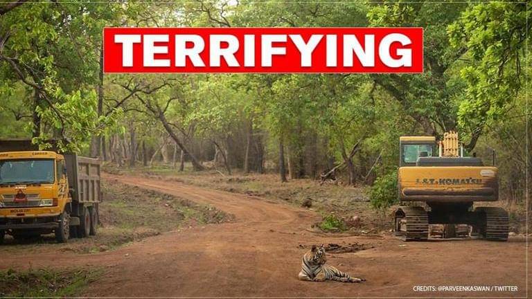 A picture of a tiger surrounded by bulldozer and truck is doing rounds on the internet. The picture was shared by Indian Forest Officer (IFS) Parveen Kaswan on Twitter. The recent post which showed a tiger surrounded by a bulldozer and a truck is an eye-opener. Within a few hours of being posted, the snap has gained huge attention and created a stir on the social media platform.