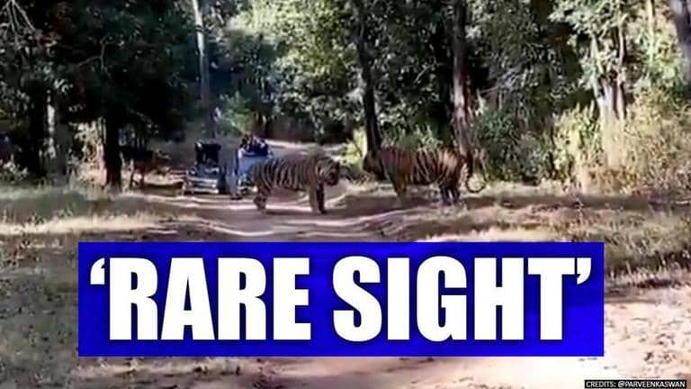 Parveen Kaswan, an Indian Forest Services officer, shared the two minute and five seconds long video on his official Twitter account on 1 April. In the video, two fully grown ferocious tigers can be seen aggressively roaring at each other, while afraid tourists stood at a distance in order to witness the sight. The IFS officer revealed that the entire battle had been captured at a forest in central India. Another IFS officer, Sandeep Tripathi, recognised the tigers as MV3 and Yuvraj, hailing from Kanha Tiger Reserve.