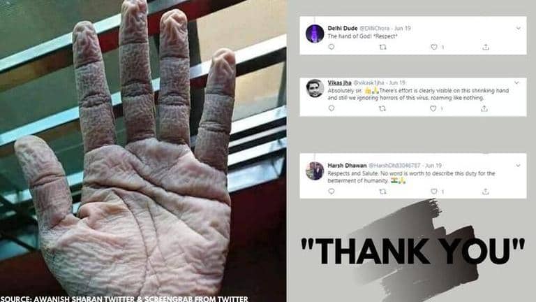 Twitter users heaped praises at frontline workers after a picture of a doctor's wrinkled hand posted online went viral. Here's what Twitterverse said. Know here