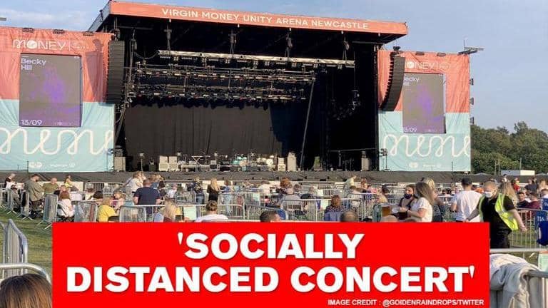 Amid the ongoing pandemic, not only masks but also social distancing has also become a norm. Following the same, the world’s first socially distanced concert was held in the UK where musician Sam Fender entertained the audience with his famous tracks. Photographs of the concert, which are now doing rounds of the internet, show people sitting in fenced off separate areas.