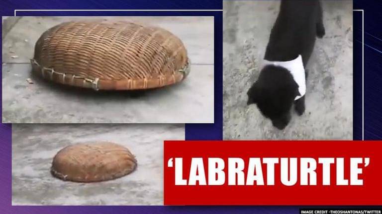 The 15-second-long video shows a basket sliding only to see an adorable little pooch getting outside, towards the end. Twitter users call it a 'labraturtle'.