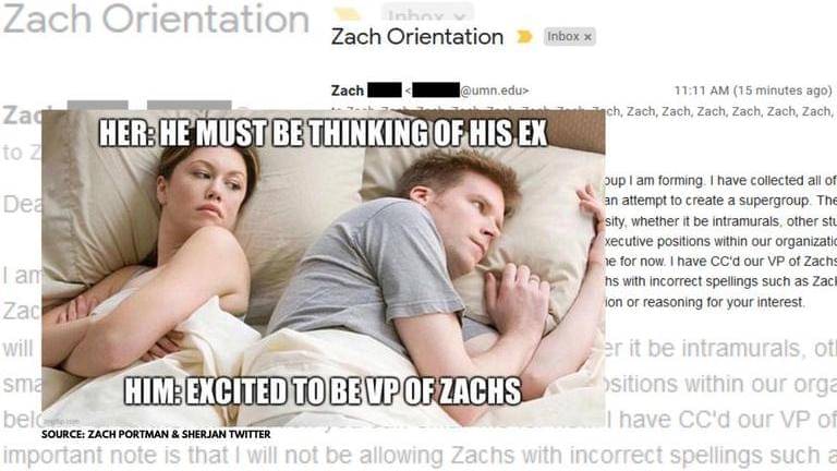 A user shared the screenshot of the email which features the group’s name ‘Zach Orientation’ written in bold. The user expressed that he suddenly received an email from this group which has left him in splits. The email group consists of all the Zach’s who are enrolled in the University of Minnesota. Apparently one of them wished to form a ‘supergroup’ of Zach’s. The detailed note, also reveals an important piece of information that the admin will not include any Zachs with incorrect spellings like Zack of Zak.