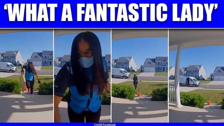 The video was posted on Facebook by resident Lynn Deborah Staffieri with the caption thanking the delivery woman. “Thank you to this great Amazon delivery woman,” she wrote. The short clip shows the courier woman walking up to the door, putting package down, knocking the door thrice before screaming abracadabra and running way.