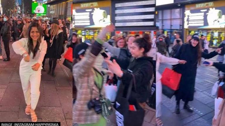 A viral video shows a woman dancing to a famous Bollywood rap song in New York's Time Square when onlookers join her and start grooving.