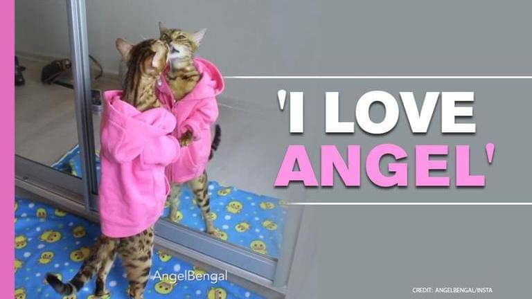 In the caption, the hooman wrote “When they ask if you’re still single. Sound On”. The clip starts by showing Angel dressed in a bright pink hoodie while she could be seen standing on its hind legs in front of the mirror. Further in the video, the hooman could be heard asking, “Are you still single ?" to which the cat starts licking her own reflection in the mirror. However, what has left netizens, even more, is the sound that the little animal produces. Watch it here: