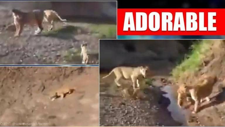 A heartwarming video of a lioness and her cubs has surfaced on social media and netizens are absolutely in love with it. The lioness can be seen helping her cub cross a narrow stream, which shows the selfless love of the lioness for her cub. The video shows a family of lions crossing a narrow stream in Gir National Park. While several cubs managed to cross the stream on their own, the lioness noticed the one who appeared a little scared to do so. The mother lioness jumped off the stream, picked the little cub in its mouth and brought it to the other side. Indian Forest Officer Susanta Nanda shared the video on Twitter.