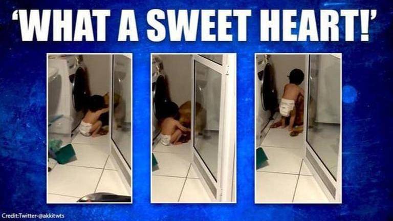 Video of a toddler comforting his dog during a thunderstorm has taken the internet by storm. The one-minute-long clip features a toddler in the bathroom who can be seen trying to comfort his dog. The adorable video also shows the diaper-wearing kid constantly babbling and hugging the canine in a bid to console it.