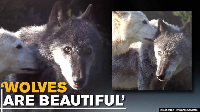 The internet is full of videos and images of adorable animals that netizens visit to lighten their mood and distract themselves from all the negativity on social media. One such is video is going viral, where two wolves can be seen showing love for each other. The video was shared by Wolf Conservation Centre, which is now garnering a lot of attention on Twitter. In the 54-second long video, a white-fur wolf can be seen licking another black-fur wolf. The black-fur wolf is standing calmly and letting the other wolf lick it while staring at the camera.