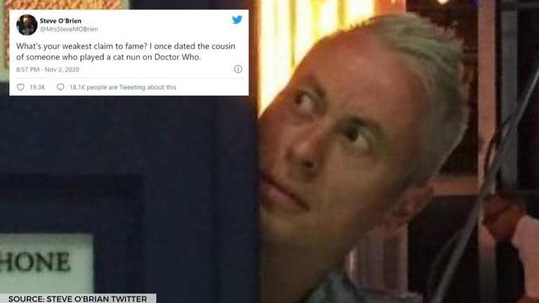 Twitter user Steve O’Brien took to his Twitter handle to ask netizens, “What's your weakest claim to fame?” After asking the question, Steve went on to reveal his ‘weakest claim to fame’. He said, “I once dated the cousin of someone who played a cat nun on Doctor Who”. The tweet took to the internet by a storm as it went on to receive several comments, likes and retweets. Take a look at Steve's weakest claim to fame tweet below.