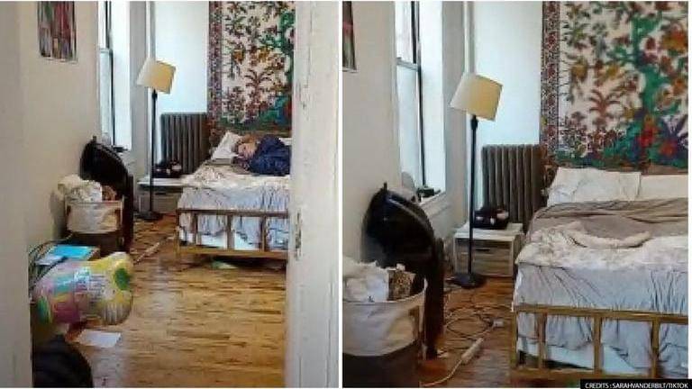 In the clip, Sarah is able to see the kitchen area, the view from the kitchen’s window and the main bedroom. The fully furnished apartment also includes a microwave, plants and other décor items which appear in the clip. In addition, the bedroom shows furniture and tapestry around. However, it also shows a woman sleeping on the bed. Even so, the woman sleeping on the bed disappears within the blink of an eye. This created a buzz among social media users.