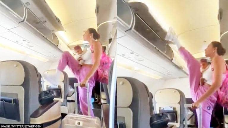 'Flexible!': Netizens react to video of woman closing flight compartment with feet