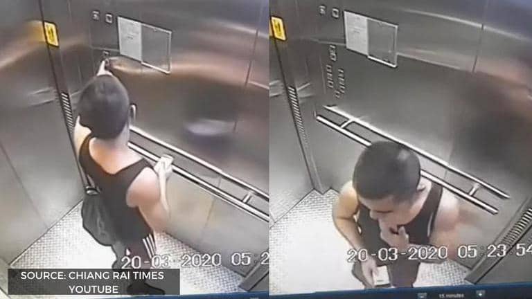 A Google Reverse Image Search by taking snips from the video leads to an article published by a Singapore-based newspaper named The Thaiger. This report claims that the man was captured in a Bangkok lift trying to deliberately contaminate it. The article was published on March 21, 2020.