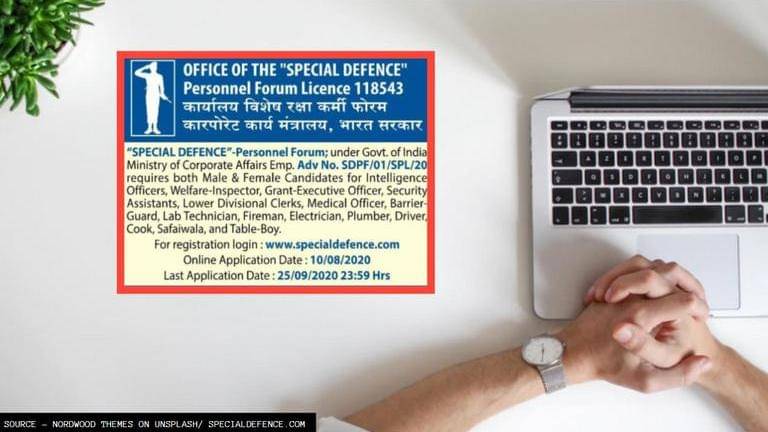 The 'Special Defence Personnel Forum' message doing the rounds on the internet claims that it has been formed by the Government of India under the Ministry of Corporate Affairs. The message claims furthermore that the last date for the application submission is August 25, 2020, along with a link to a website - specialdefence.com. Check out the message below -