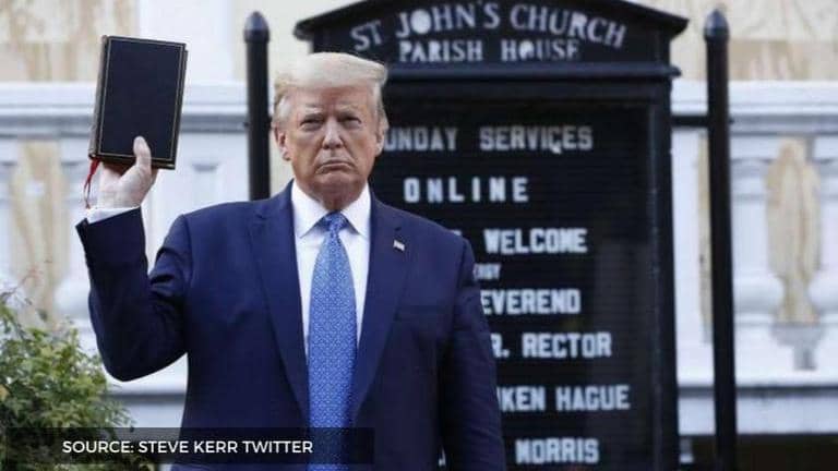 Donald Trump walked out of the White House across Lafayette Square to St. John's Episcopal Church. He was accompanied by Jared Kushner, the president’s son-in-law and senior adviser, and Ivanka Trump, his eldest daughter, and senior adviser. This whole act by Donald Trump is now termed as a Trump photo op. i.e. Trump's photo opportunity. There is a separate Wikipedia page made on the same.