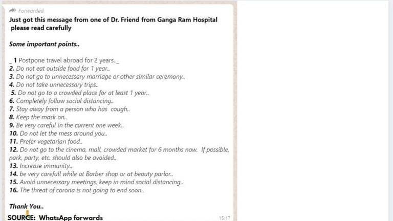 • The WhatsApp message stating 16 Coronavirus prevention tips by a doctor of Ganga Ram Hospital has recently been doing the rounds.