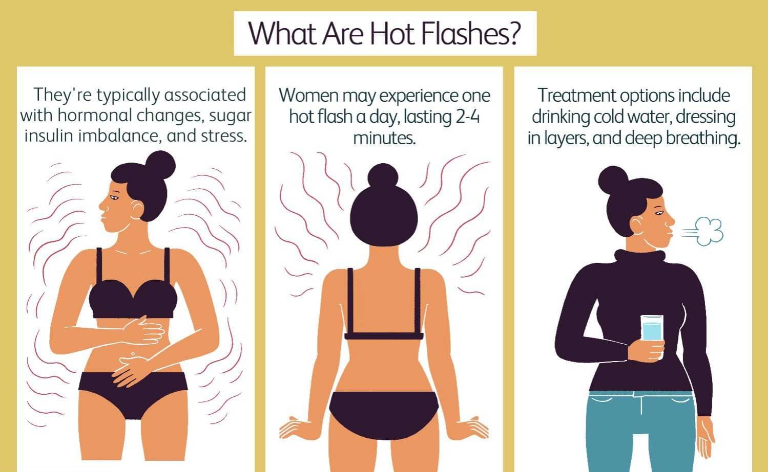 "Common symptoms include sudden warmth, flushing, sweating, and occasionally, palpitations," says Dr. Anusha. Avoiding triggers such as spicy foods, caffeine, alcohol, and stress can reduce frequency and severity. Dressing in layers, staying in a cool environment, and stress management through relaxation techniques are also beneficial.