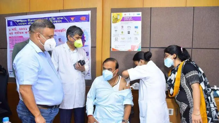 Assam Health Minister Himanta Biswa Sarma received the first dose of COVID-19 vaccine on Monday as the state government launched the third phase of the inoculation drive for senior citizens and people in the age group of 45-59 with comorbidities. The 52-year-old minister was administered the first dose of the vaccine at the Gauhati Medical College Hospital where several prominent people, including retired bureaucrats, also received their first dose.