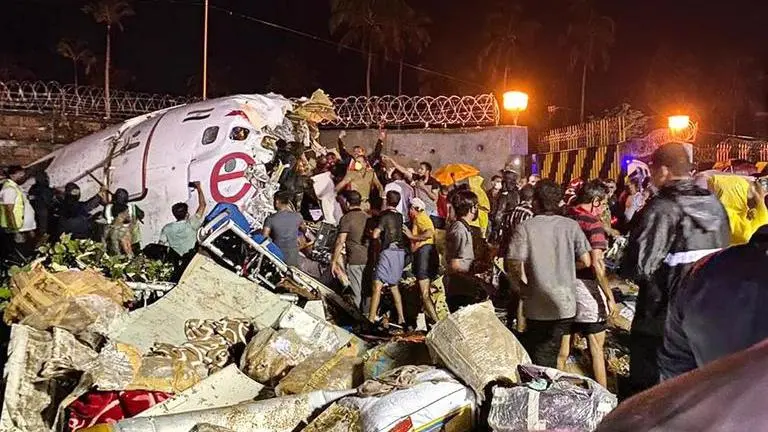 The ill-fated plane, coming from Dubai with 190 people, overshot the runway 10, went down 35 feet on a slope and broke into two pieces. The crash killed at least 18 people, including the flight's two pilots, and scores were injured.