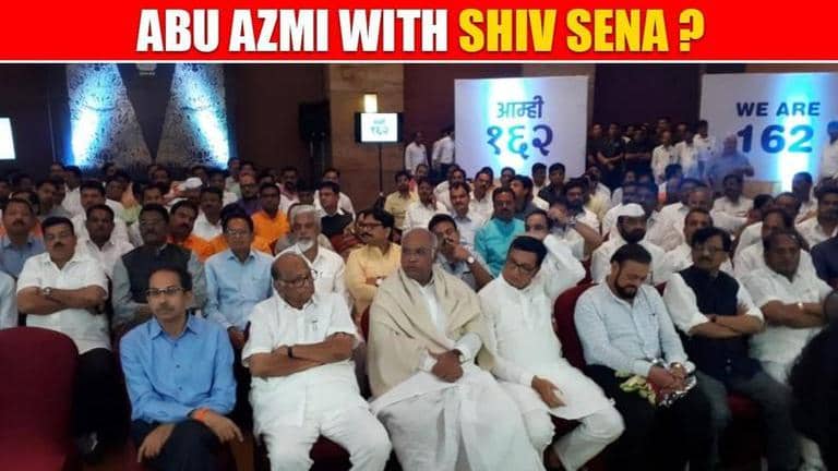 In what came as a major surprise amidst the show of strength of NCP, Congress and Shiv Sena leaders on Monday, Samajwadi Party's Abu Azmi was present and prominently so at Mumbai's Grand Hyatt Hotel. Abu Azmi was seated at the front row, alongside Sena chief Uddhav Thackeray, NCP supremo Sharad Pawar, Congress' Mallikarjun Kharge, Balasaheb Thorat and Sena's Sanjay Raut. He took oath with the leaders of the Maha Vikas Aghadi alliance.