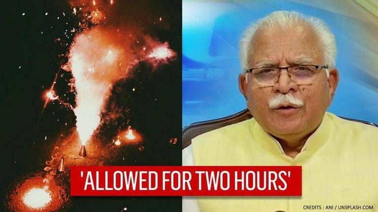 Amid the row over the ban by several states on bursting crackers during Diwali, Haryana Chief Minister Manohar Lal Khattar on Sunday said that people in the State will be allowed to sell and burst crackers for two hours on the occasion of Diwali.